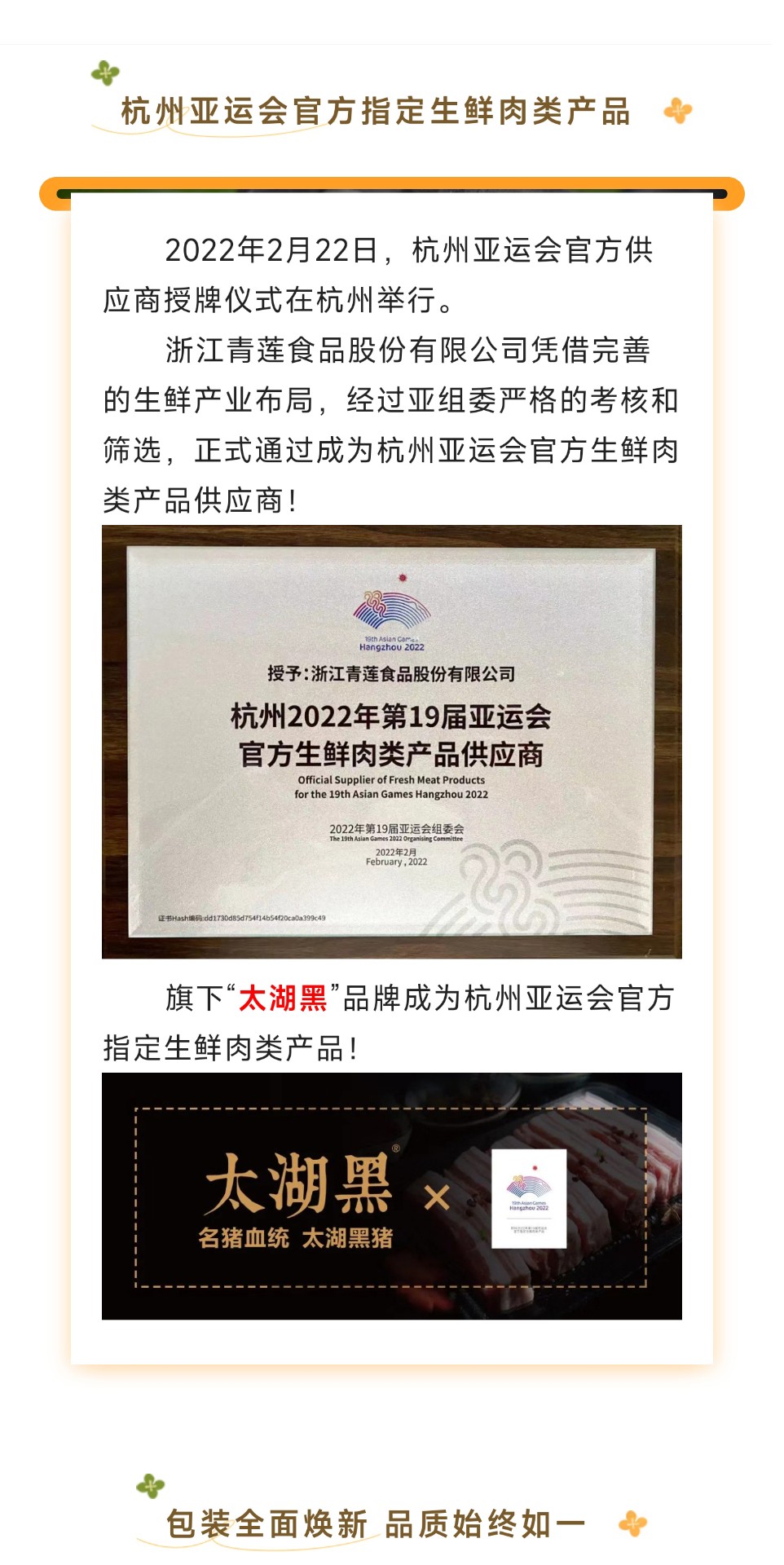 品優(yōu)脂黑豬 賽亞運(yùn)風(fēng)采|太湖黑包裝全面煥新,上盒馬即可品嘗運(yùn)動(dòng)員同款豬肉!